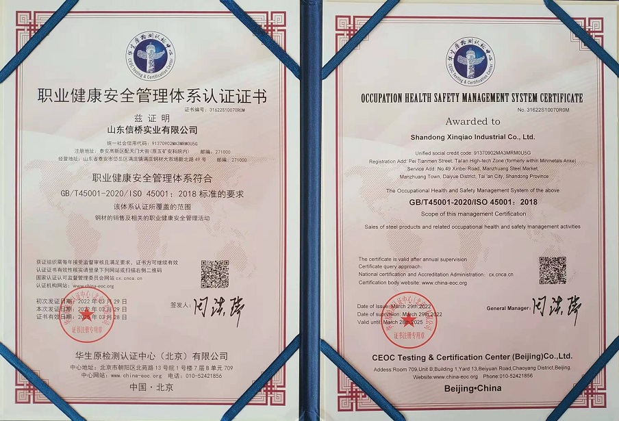 職業(yè)健康安全管理體系認證證書